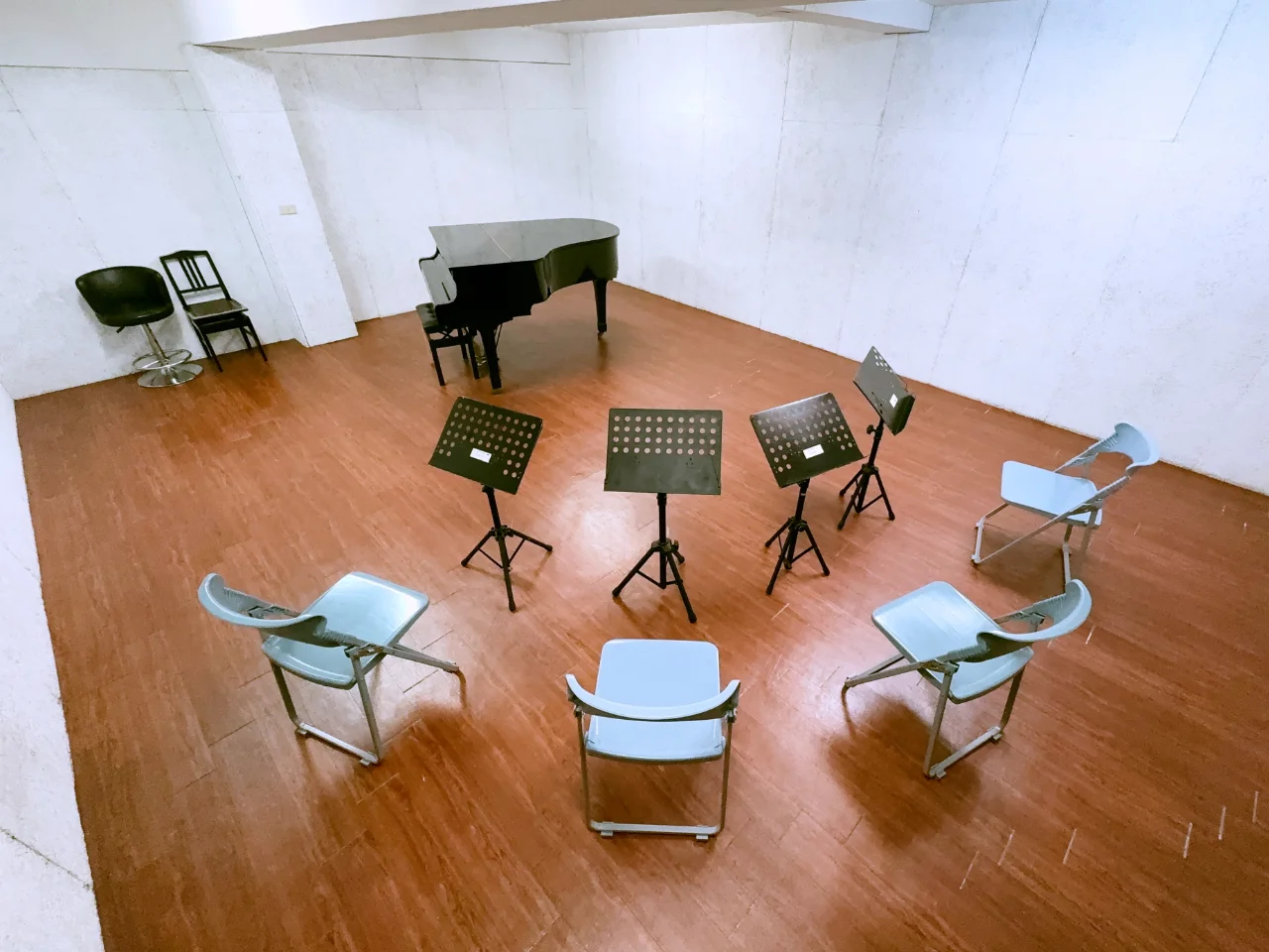 練習的終極目標是演出,透過分享傳遞音樂的意義。為此我們規劃了: 各式琴房以及能容納 100 人的小型演奏廳與 70 人的展演空間, 提供給愛音樂的大家舉辦各式器樂獨奏、重奏室內樂展演。