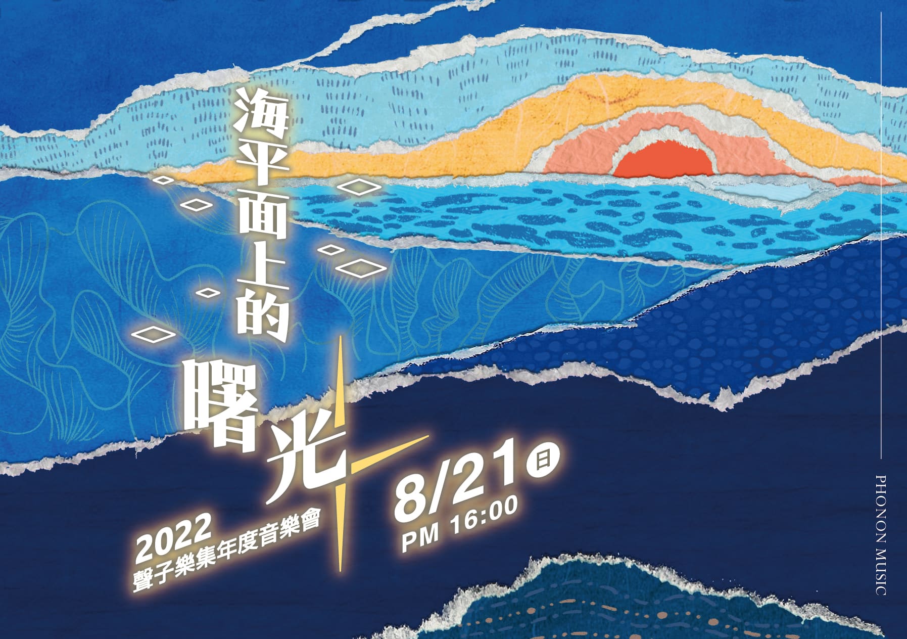 過去 50 年,海洋吸收了地球極大部分的熱量與碳排放,默默守護著生態平衡。聲子,是個住在海邊的樂團,海洋紀錄了我們生命中的重要回憶。在這場音樂會中,一群在海邊成長的音樂家,將對大海深刻的情感轉化為樂音,分享我們對海洋的愛,並期盼喚醒大眾對海洋資源及環境問題的重視。