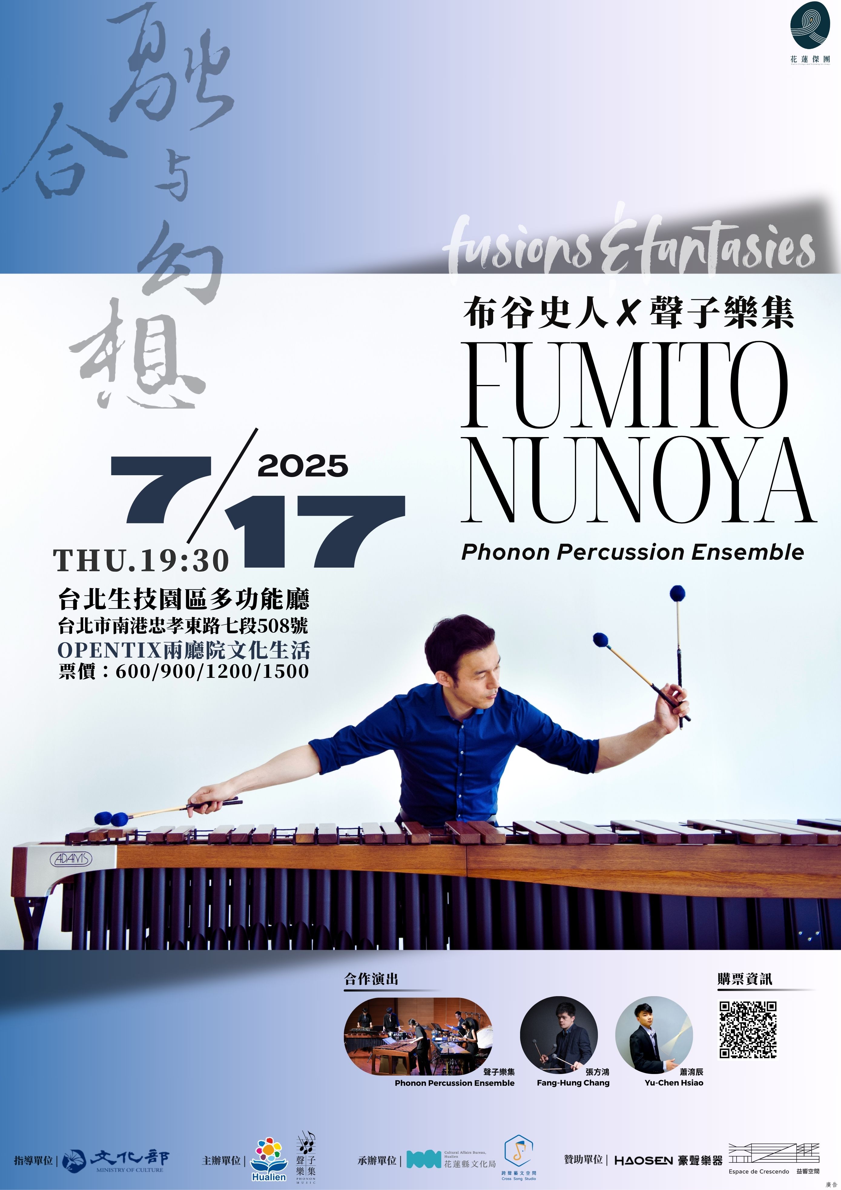 來自日本的馬林巴演奏家布谷史人(Fumito Nunoya),以其細膩的樂句詮釋與絕佳的木琴演奏技巧,活躍於世界各大音樂廳與打擊樂舞台。本場音樂會,將與聲子樂集打擊樂團(Phonon Percussion Ensemble )共同合作演出,將帶來一系列橫跨古典、爵士與現代風格的精彩曲目,展現馬林巴的無限魅力。